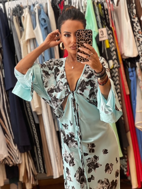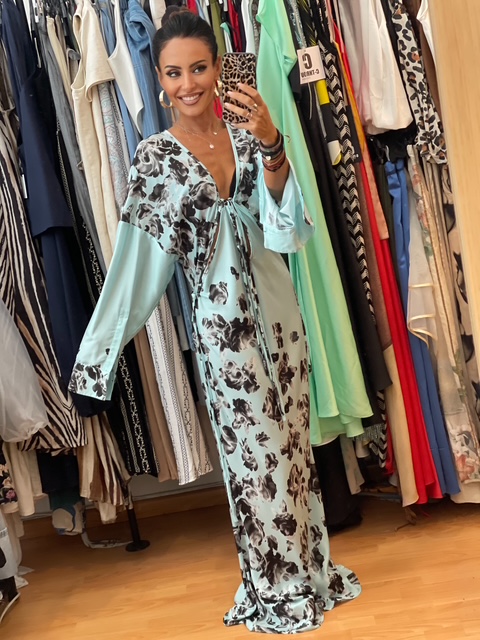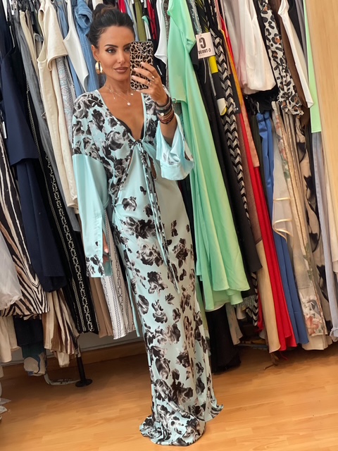 - Περιγραφή : C Throu Cut Out Σατέν Μάξι Φόρεμα. Στενή ίσια γραμμή, V-Neck ντεκολτέ εμπρός με ρυθμιζόμενα κορδόνια. Μακριά μανίκια με μανσέτες και κουμπιά, κοψίματα στα πλαινά και στο κέντρο. Ρυθμιζόμενο κορδόνι στο πίσω μέρος για καλύτερη και πιο μεσάτη εφαρμογή