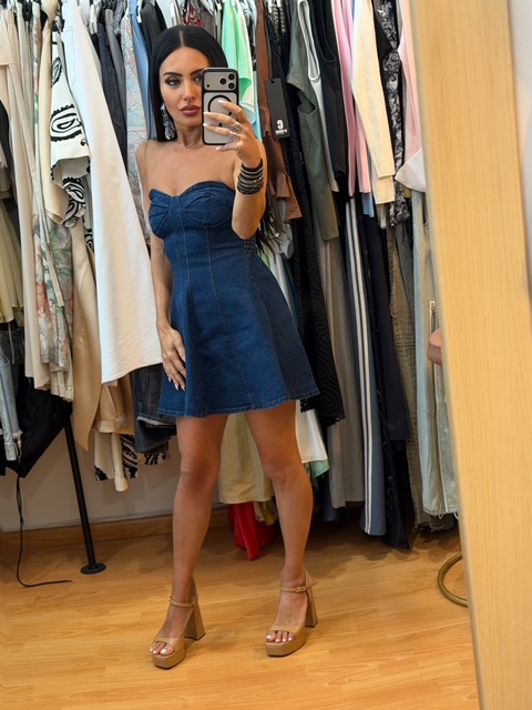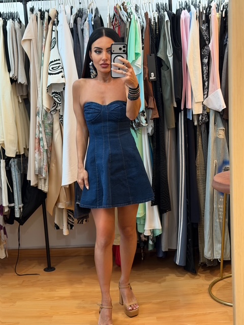 - Περιγραφή: Denim Μίνι Στράπλες Κλος Φόρεμα. Σφηκοφωλιά στο πίσω μέρος για καλύτερη εφαρμογή. Ελαστικό