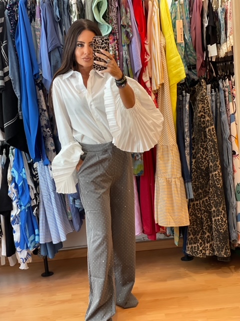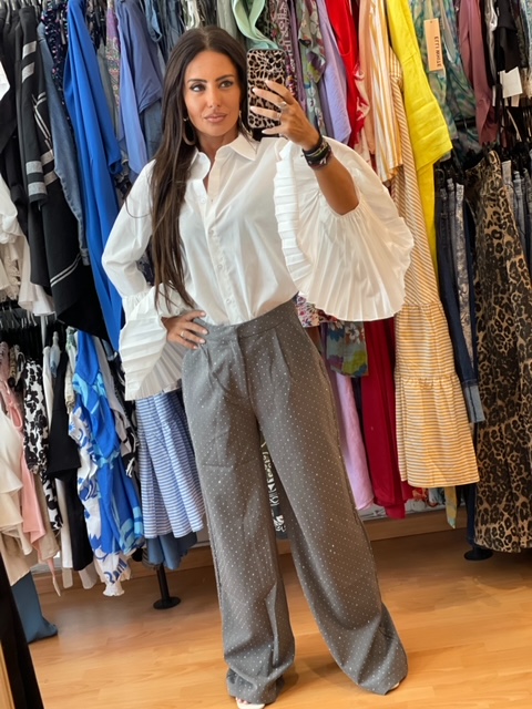 Elli White Γκρι Κλασικό Παντελόνι με Στρας