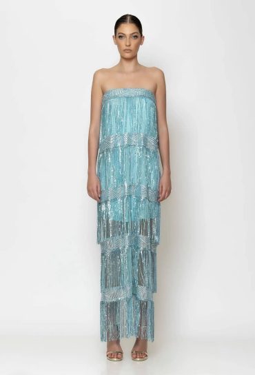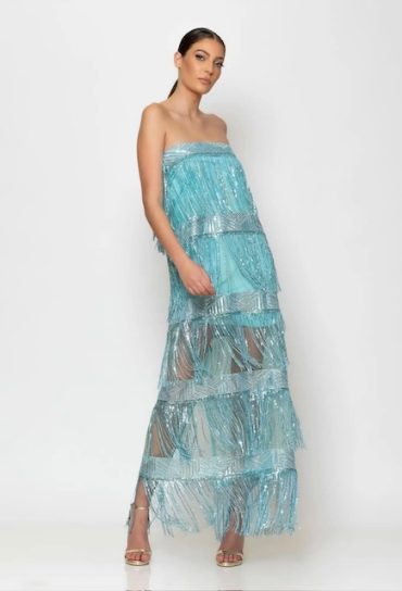 C Throu Sequin Στράπλες Μάξι Φόρεμα με Κρόσσια