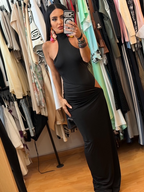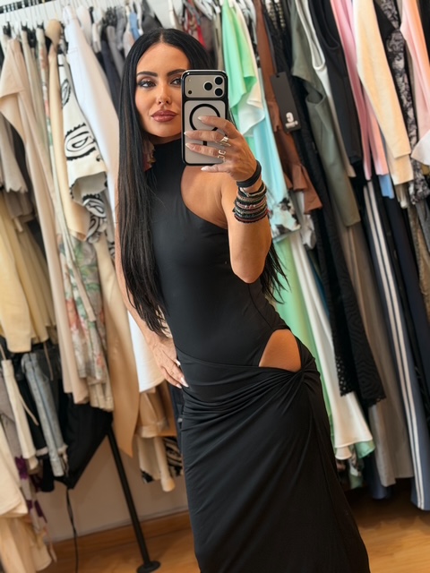 Μαύρο Ελαστικό maxi Jersey Cut-out Dress με Εσωτερικό Body
