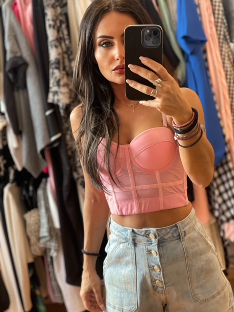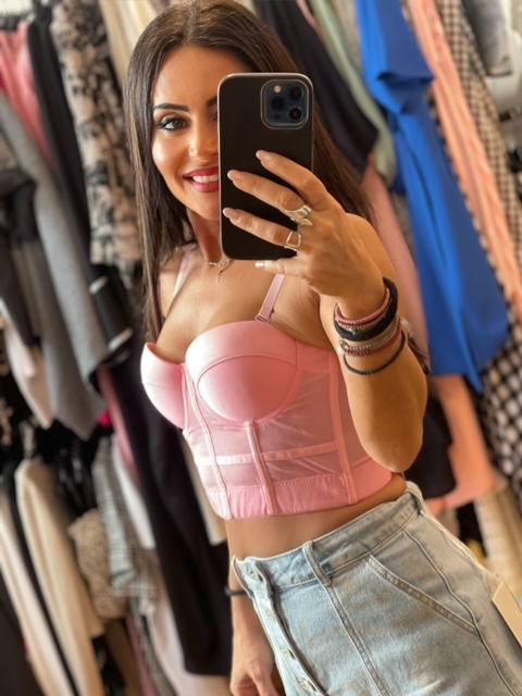 - Περιγραφή : Ροζ Μπούστο με μπανέλα και Cups . Ρυθμιζόμενες τιράντες και κλείσιμο στην πλάτη με τετραπλή σειρά από κόπιτσες για καλύτερη εφαρμογή στην πλάτη. Το μέγεθος αφορά τα Cups και όχι την περίμετρο του στήθους