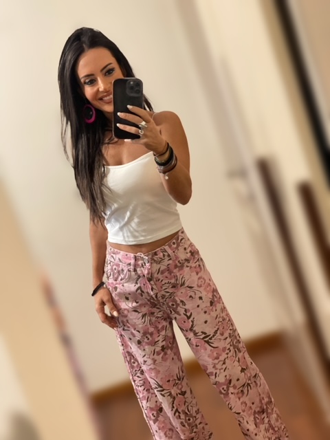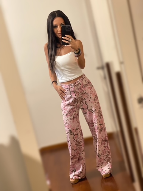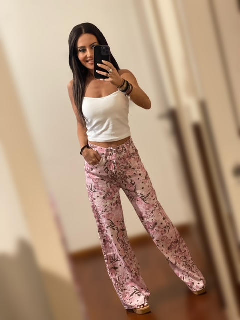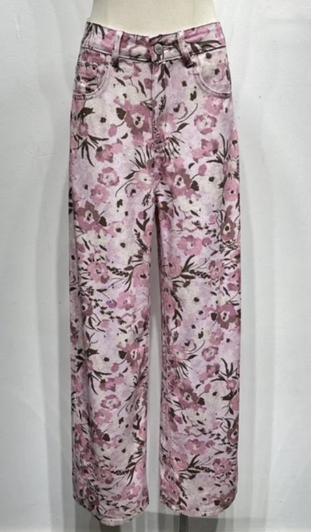 Ροζ Τζιν Φλοράλ Παντελόνι